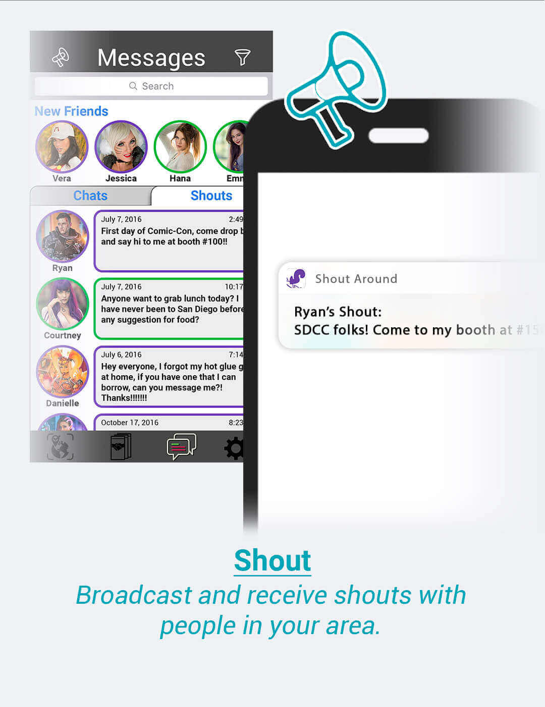 Shout Around- Developed in conjunction with Grimm Bros andAtomic Hype for all mobile devices, Shout Around is THE app that helps bring the convention community and cosplayers together!